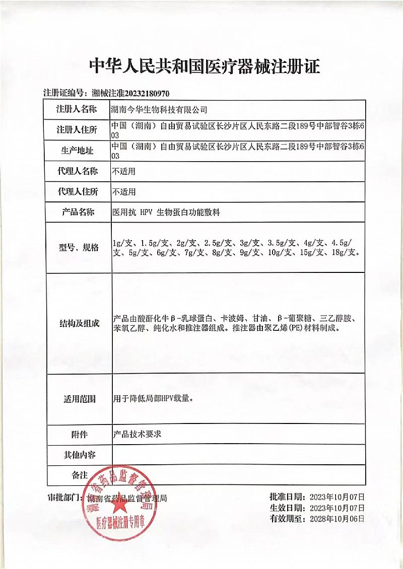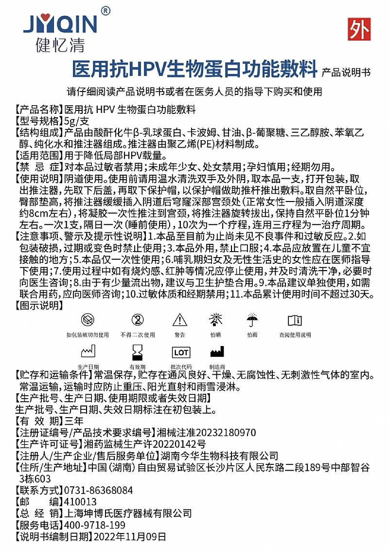 | 產(chǎn)品名稱 | 健憶清-醫(yī)用抗HPV生物蛋白功能敷料 |