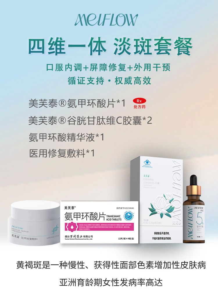 | 產(chǎn)品賣點(diǎn) | #美芙泰#黃金三搭檔#氨甲環(huán)酸精華液#醫(yī)用皮膚修復(fù)敷料#黃褐斑百問百答 🧬黃褐斑口服治療黃金三搭檔: 氨甲環(huán)酸片➕谷胱甘肽維C 💦美白淡斑外用精華液: MEIFOLW·氨甲環(huán)酸精華液 ✅械字號修復(fù)面霜: 美芙汰醫(yī)用修復(fù)敷料 獲得權(quán)威指南推薦獲得權(quán)威指南推薦🔎🎖🎖🎖 追求美麗|關(guān)注美芙泰精彩繼續(xù); |
