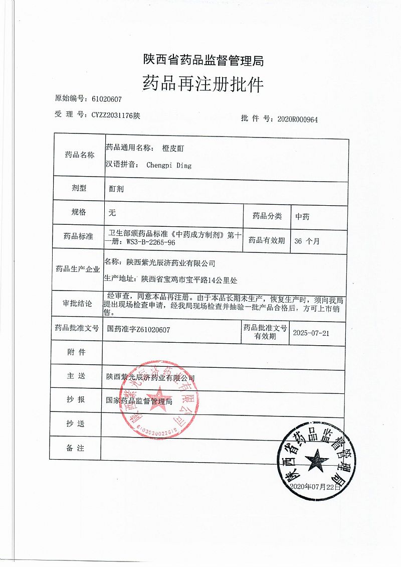 生產(chǎn)企業(yè): 陜西紫光辰濟藥業(yè)有限公司