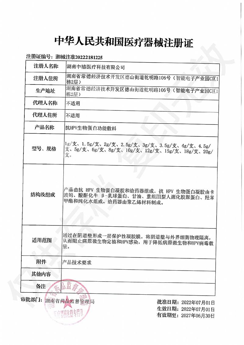 | 產(chǎn)品名稱 | 抗HPV生物蛋白功能敷料 |