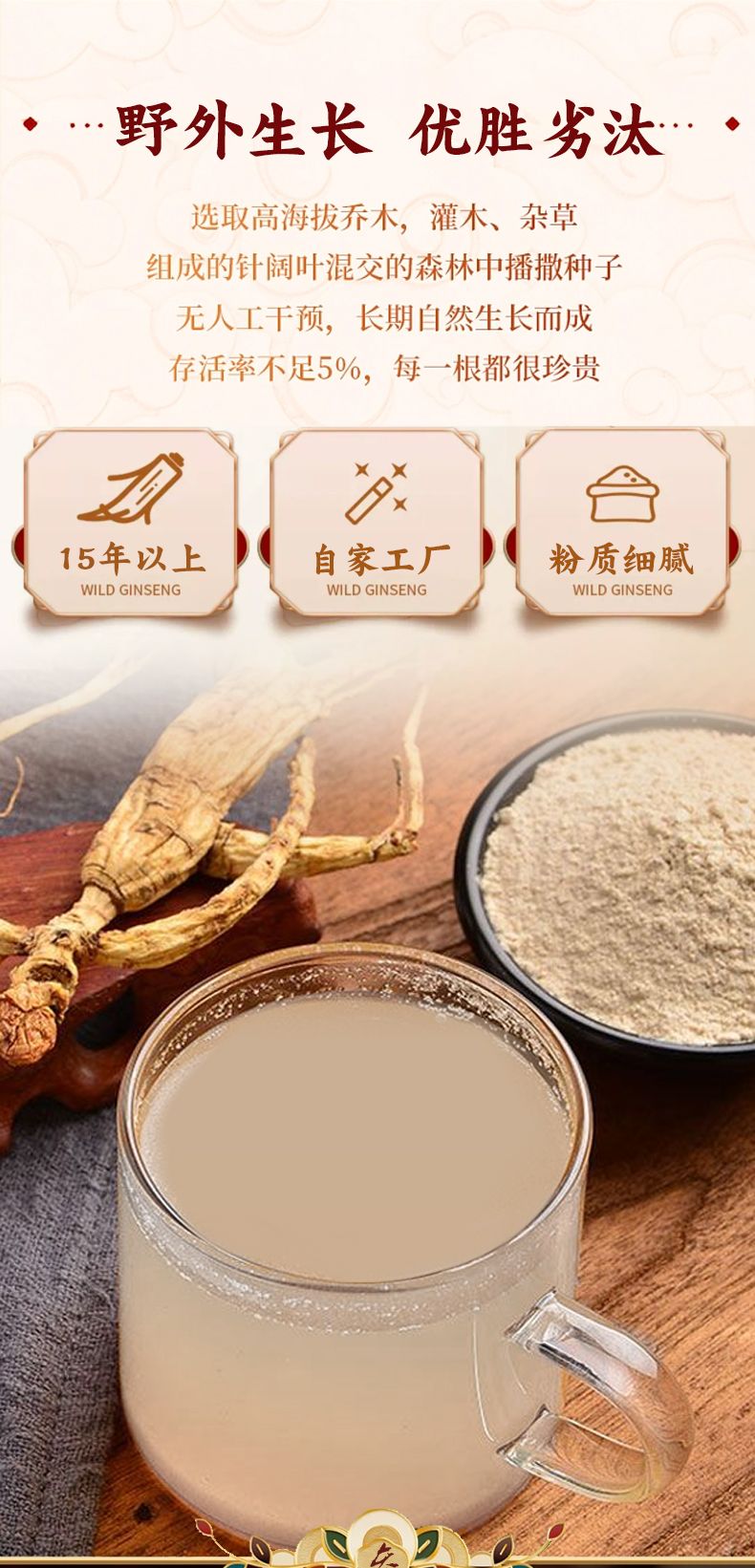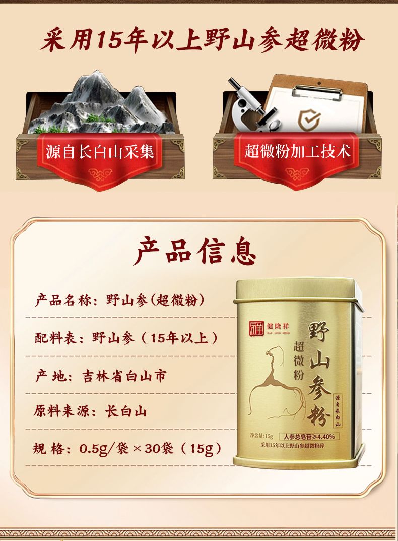 | 主要成分 | 15年以上野山參 |