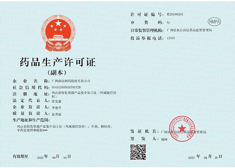 生產(chǎn)企業(yè): 廣西潤達(dá)制藥股份有限公司
