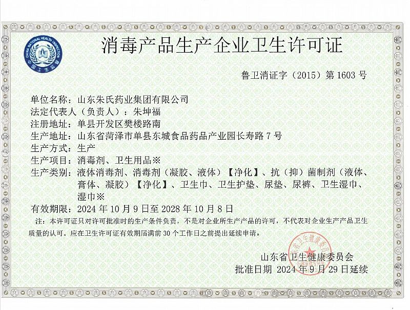 批準(zhǔn)文號: 魯衛(wèi)消證字2015第1603號