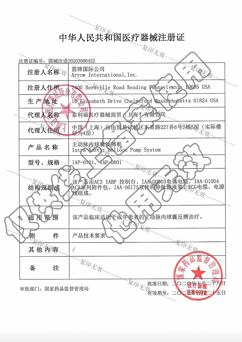 | 主要成分 | ARROW主動(dòng)脈內(nèi)球囊反搏泵IAP-0701等 |