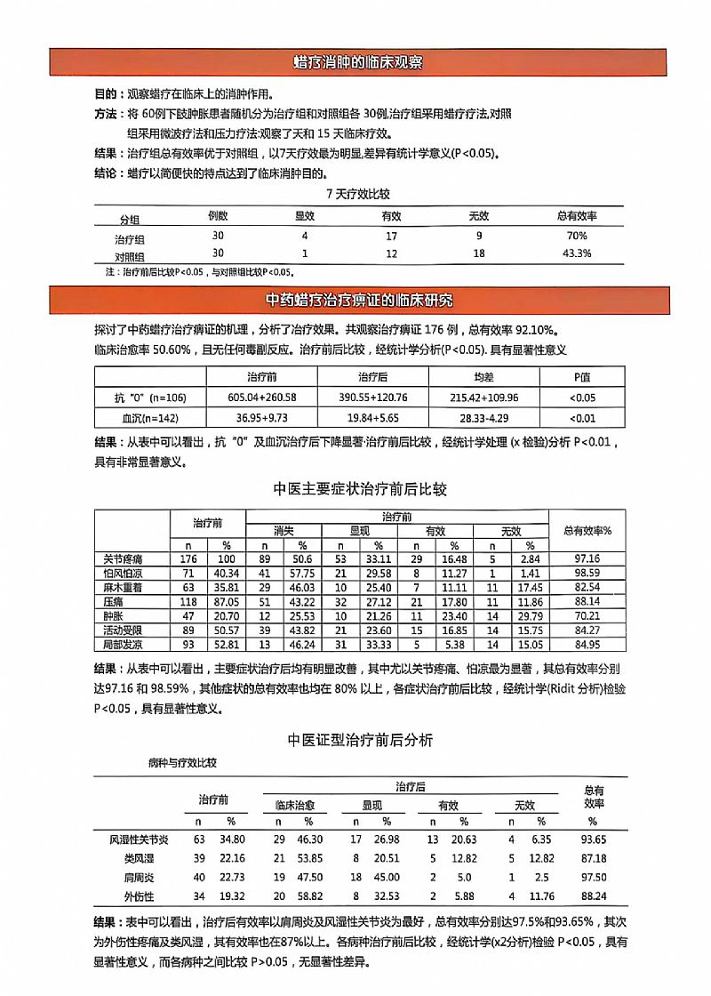 | 補(bǔ)充說明 | 本品為中醫(yī)理療科新技術(shù),為臨床治療風(fēng)寒濕痹癥提供了一個(gè)新的選擇,特別是伴有疼痛的患者,治療效果明顯。 |
