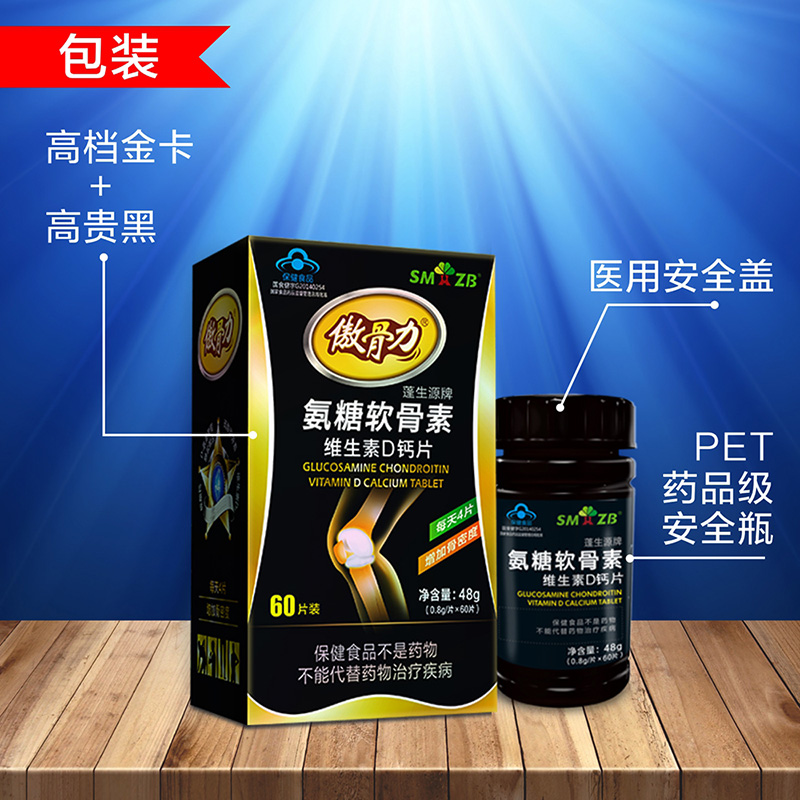 | 作用機(jī)理 | 每100g含:鈣12.5g、硫酸軟骨素14.0g、D-氨基葡萄糖鹽酸鹽15.0g、維生素D3126μg |