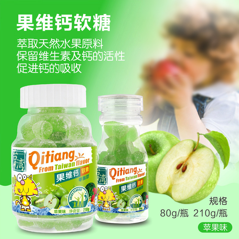 | 產(chǎn)品名稱 | 齊天蓋-果維鈣軟糖(蘋果味) |