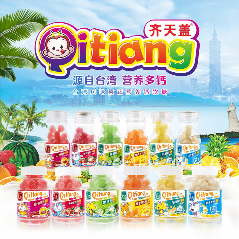| 補(bǔ)充說明 | 齊天蓋 果維鈣軟糖(蘋果味) 產(chǎn)品特點(diǎn): 1、選用天然海洋紅澡類植物為主要原料,是一種天然的膳食纖維,并配以果蔬、維生素、有機(jī)鈣,營養(yǎng)價(jià)值極高,且脂肪含量為零,不添加有害的甜蜜素和防腐劑,確保兒童成長健康,吃著放心。 2、零脂肪、不粘牙、不蛀牙,Q彈好吃。 3、天然食品,可作為清真食品; 4、營養(yǎng)豐富,原滋原味,入口順滑,口感香甜,是兒童及成人**的零售。 5、水果味,富含多種維生素和鈣,助力寶寶健康成長。 產(chǎn)品包裝: 1、齊天蓋 果維鈣軟糖(蘋果味) 210g/瓶 (實(shí)惠裝) 2、齊天蓋 果維鈣軟糖(蘋果味) 80g/瓶 (促銷裝) 營養(yǎng)師建議: 兒童每天食用量不超過10粒。 補(bǔ)充說明: 1、齊天蓋水果味鈣軟糖配方和生產(chǎn)工藝來源于臺灣臺東縣蘭嶼鄉(xiāng)齊云灝家族,民國二十六年至今已有近90余年,其口感Q彈,并配以“愛爾蘭苔蘚”天然的膳食纖維,營養(yǎng)價(jià)值極高,深得當(dāng)?shù)厥忻竦南矏郏?br>2、1992年3月,福建省提出“兩門對開,兩馬先行”的“小三通”構(gòu)想后,2007年11月“齊天蓋水果味鈣軟糖”經(jīng)齊云灝長孫傳入福建泉州。 3、圍繞“全家健康”場景,生命之寶藥業(yè)公司已成功培育SMZB生命之寶、傲骨力、磁虎、醫(yī)液清、齊天蓋、湲液、雷聲一點(diǎn)靜、貝西優(yōu)等八大核心品牌,產(chǎn)品線精準(zhǔn)覆蓋全家營養(yǎng)、骨骼健康、嬰童養(yǎng)護(hù)、中老年調(diào)理、皮膚外用及五官護(hù)理等領(lǐng)域,為不同年齡段和健康需求的家庭提供個(gè)性化解決方案。 |