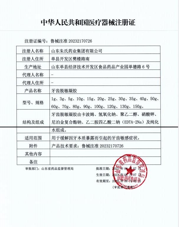 | 產(chǎn)品名稱 | 牙齒脫敏凝膠 |
