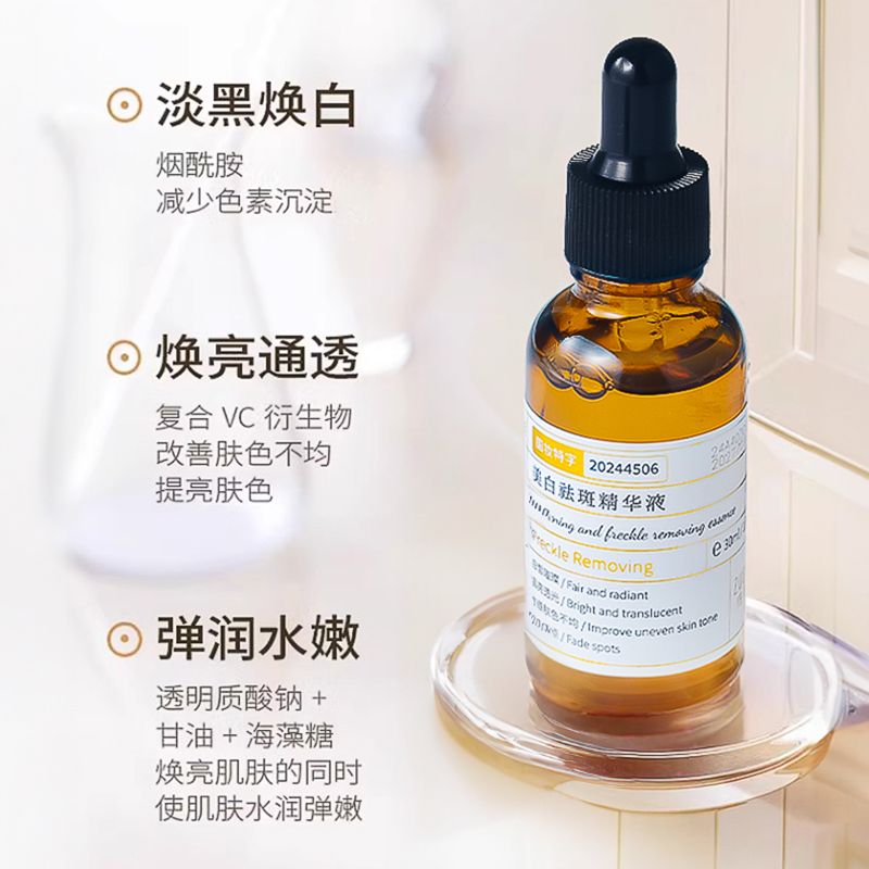 | 產(chǎn)品賣點 | 國妝特字批文,高效涂抹式祛斑,富含煙酰胺、α-熊果苷、苯乙基間苯二酚(377)、VC衍生物等美白成分,精準靶向去除色斑困擾,讓肌膚透白水潤、年輕靚麗! |