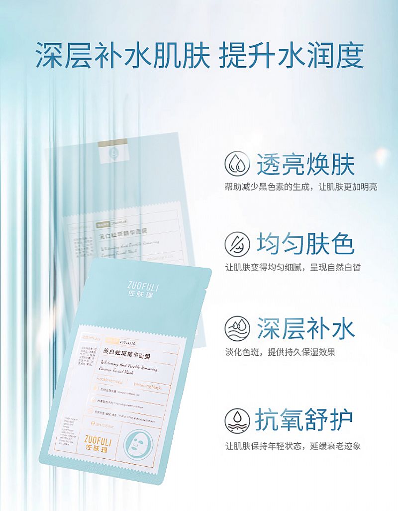 | 產(chǎn)品名稱 | 佐膚理美白祛斑精華面膜 |