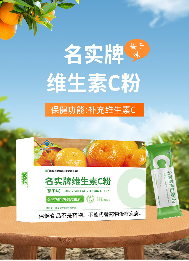 產(chǎn)品名稱: 名實(shí)牌維生素C粉(橘子味)