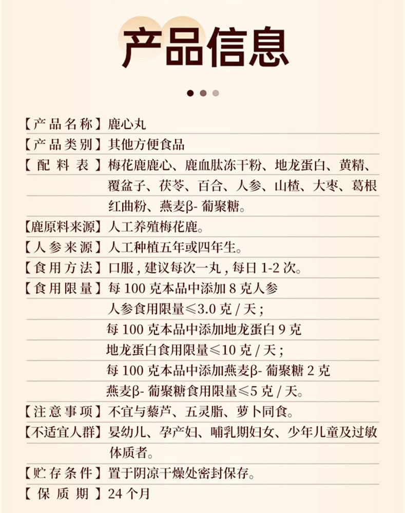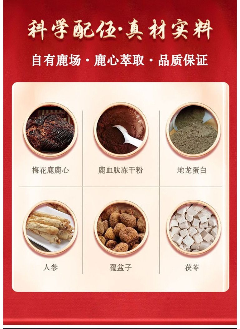 | 主要成分 | 人參、鹿心、鹿血肽等 |