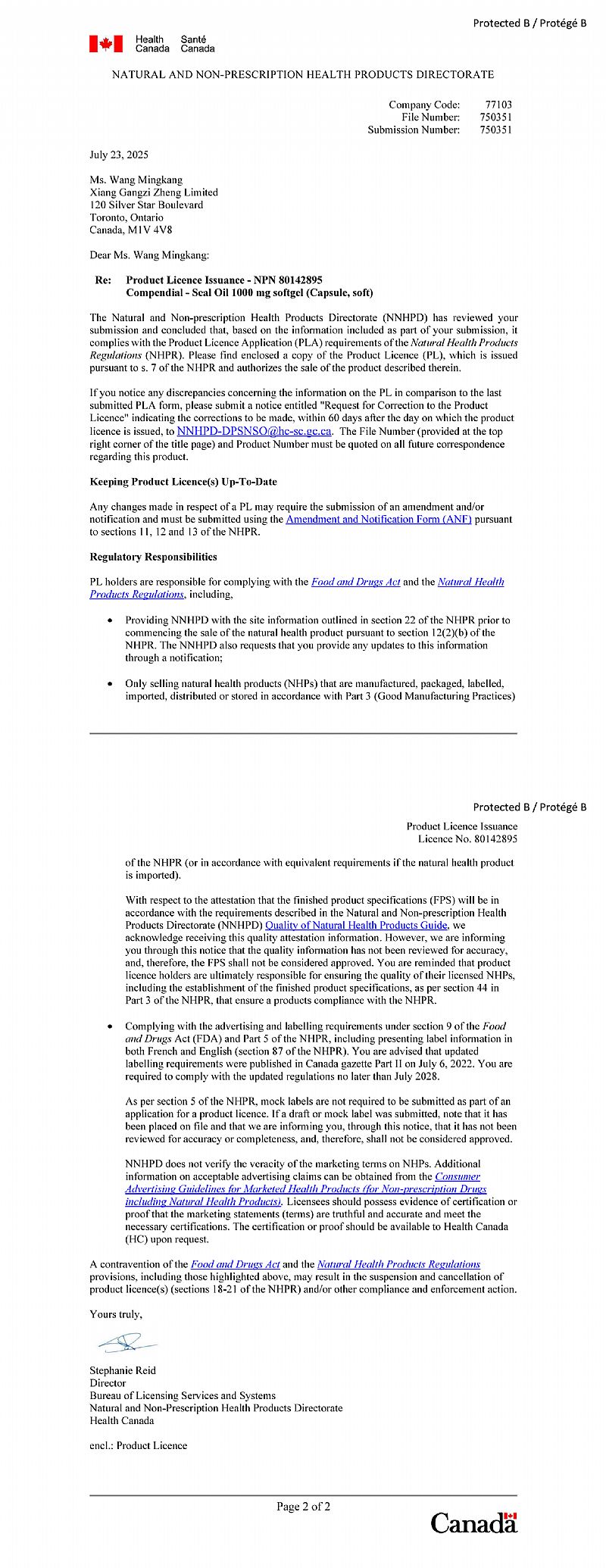 本品已獲得加拿大衛(wèi)生部天然健康產(chǎn)品許可證(編號:80142895),符合加拿大天然健康產(chǎn)品法規(guī)要求。如有任何不適,請立即停止使用并咨詢醫(yī)生。