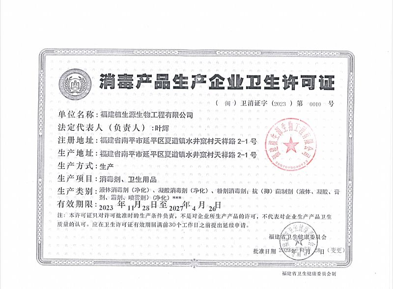 批準文號: 閩衛(wèi)消證字2023第0010號