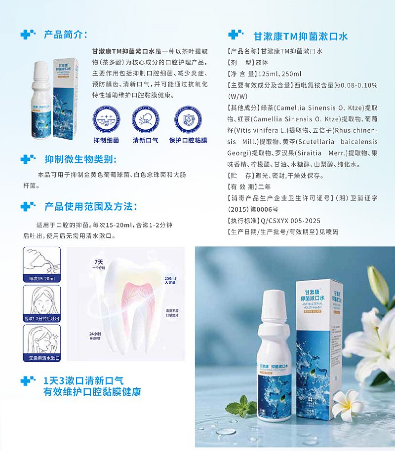 | 產(chǎn)品名稱 | 甘漱康™抑菌漱口水 |