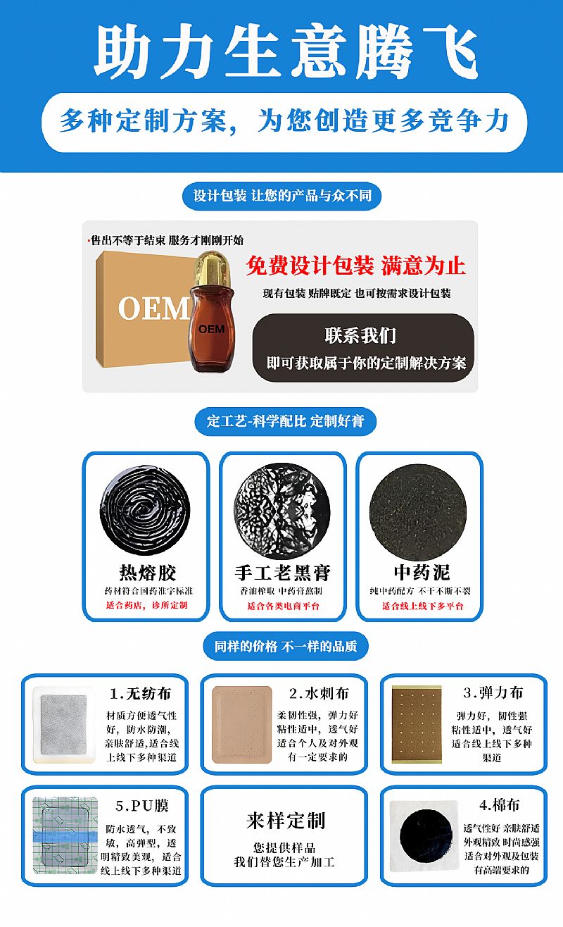 | 補充說明 | 主營膏藥貼牌代加工,老黑膏藥貼牌代加工,理療貼代加工,治療貼代加工,穴位貼代加工,小兒穴位貼代加工,穴位貼敷治療貼代加工,遠紅外理療貼代加工,磁療貼代加工,熱療貼代加工,三伏貼代加工,暖宮貼代加工,遠紅外貼代加工,空白裸貼代加工,凝膠代加工,黑膏藥貼代加工,發(fā)熱包代加工,鼻炎噴霧劑代加工,鼻炎貼代加工,凝膠乳膏代加工,活絡油代加工,前列腺貼代加工,灸熱貼代加工,磁熱療貼代加工,隔物灸代加工,燙熨治療貼代加工,熱奄包代加工,磁灸熱貼代加工,灸熱治療貼代加工,自熱貼代加工,按摩精油代加工,精油代加工,膏藥oem貼牌定制代加工,歡迎有需要膏藥貼牌代加工的朋友來電13027787717咨詢洽談合作。 |