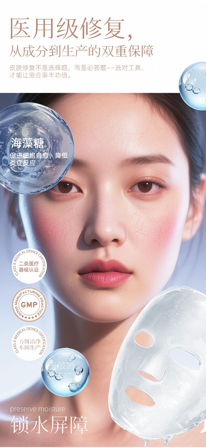 海藻糖皮膚修復(fù)敷料面創(chuàng)面敏感肌皮膚皮炎械字號(hào)貼牌