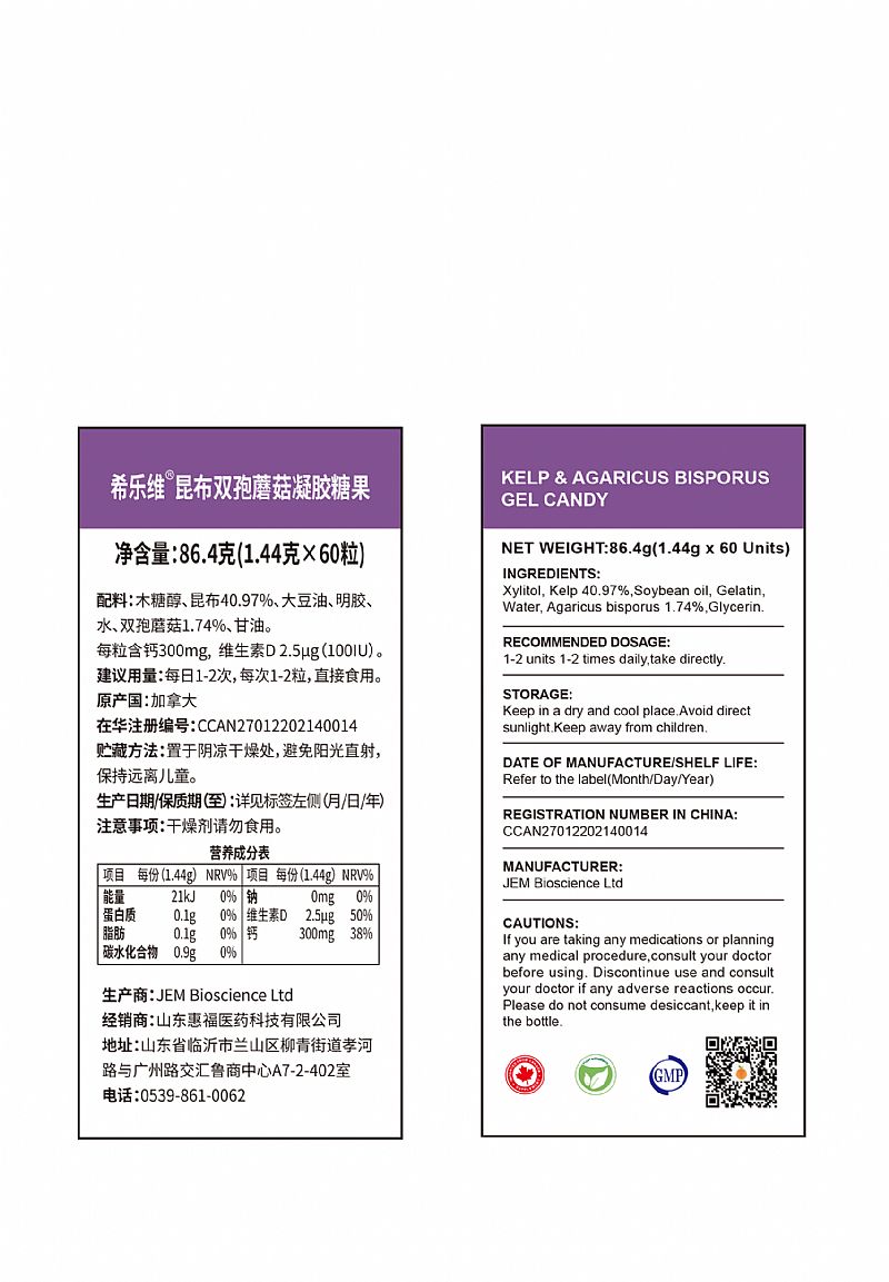 | 主要成分 | 木糖醇、昆布40.97%、大豆油、明膠、水、雙孢蘑菇1.74%、甘油。 |