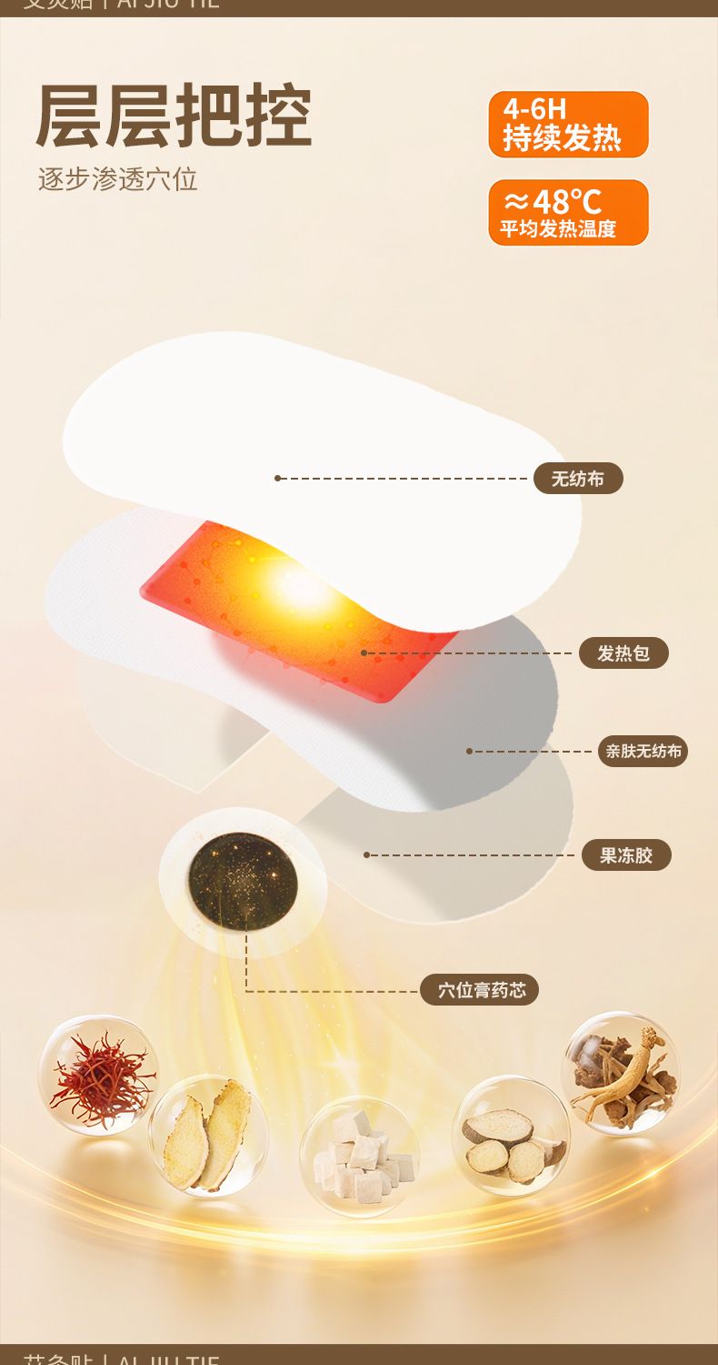 | 使用方法 | 1.撕開獨立包裝取出艾灸貼與分體式膏藥芯;2.將膏藥芯貼于目標穴位/不適部位;3.貼上艾灸貼固定,享受4-6小時恒溫?zé)岱螅ㄒ淮涡援a(chǎn)品,不可重復(fù)使用)。 |