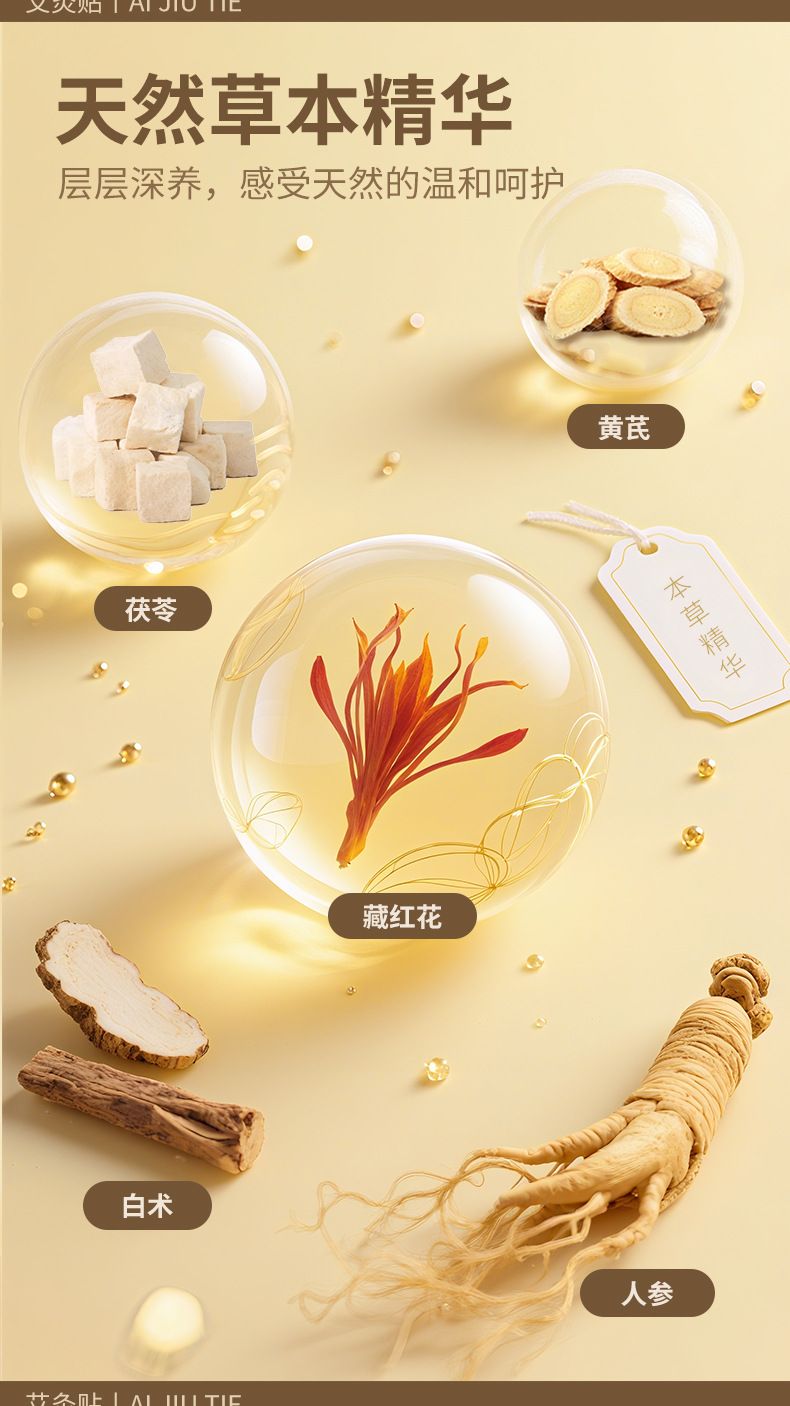 | 產(chǎn)品規(guī)格 | 1 套(艾灸貼 + 膏藥芯)/ 袋獨立包裝,水彩暈染外觀;支持定制 3 套 / 盒 |