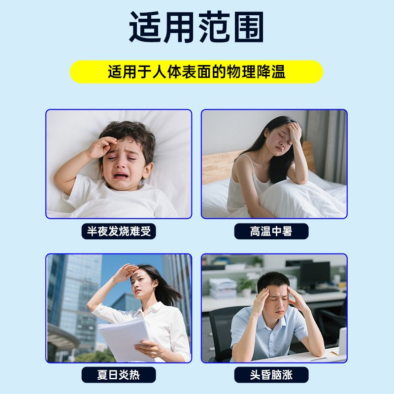 | 產(chǎn)品用途 | 退熱貼采用親水凝膠材質(zhì),清涼降溫、物理散熱,適用于成人及兒童發(fā)燒發(fā)熱、頭痛頭暈、燥熱不適時冷敷舒緩,也可用于日常消暑降溫、緩解疲勞燥熱,使用溫和舒適,貼合肌膚,操作簡單,居家、出行、辦公常備,快速舒緩多種悶熱不適。 |